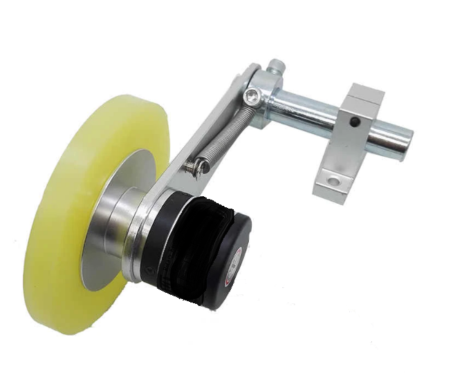 No método circunferencial indireto, uma roldana dentada acoplada a um encoder absoluto multi-turn engata com a circunferência da carga para rastrear seu deslocamento angular.