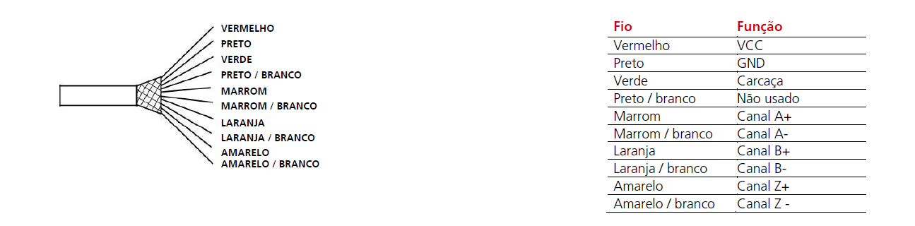 1º Siga o esquema de fiação ou pinagem do encoder designado na folha de dados do codificador