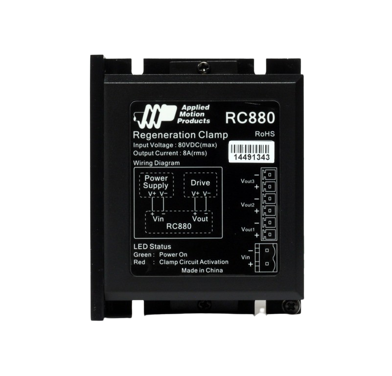 O RC880, fabricado pela Applied Motion Products, é um grampo de regeneração compacto, projetado especificamente para proteger drives DC alimentados por corrente contínua. Ele desempenha um papel crucial ao limitar os aumentos de tensão no barramento durante a desaceleração do motor sob carga, um fenômeno conhecido como regeneração.