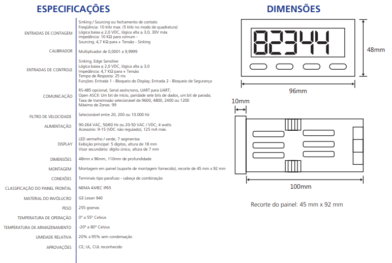 Contador Totalizador Eletrônico C628, Principais Aplicações: Processos industriais em geral, cada contador eletrônico possui sua respectiva área de atuação.