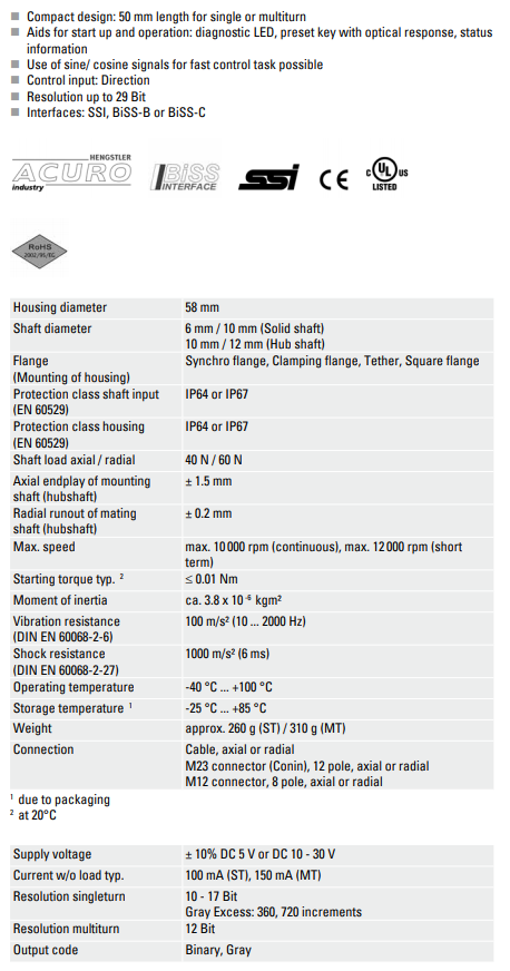 Integrando uma das séries de encoders absolutos mais versáteis do mercado, o Encoder Hengstler AC58/1212EF.47DPR oferece ampla range de temperatura, classificação de proteção até IP67 e especificações de choque e vibração altas, entre outras características notáveis.