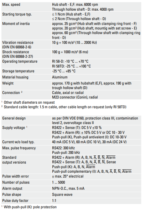 Encoder RI58TD1024W001, Principais Aplicações: Atuadores, Motores – Automação de Fábricas – Elevadores – Embalagem – Laboratórios – Motores Elétricos – Papel e Celulose – Servomotores – Siderurgia e Mineração.