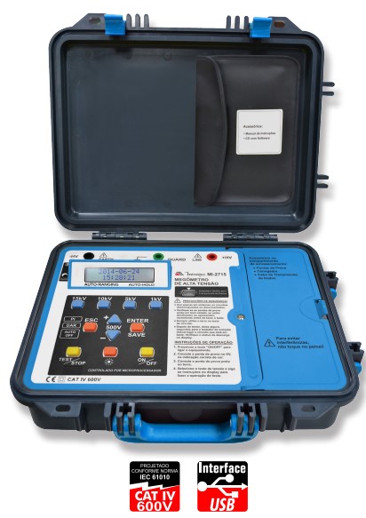 O Megômetro MINIPA MI-2715 é um instrumento usado para teste de isolação e funções como medidas de tensão AC e DC. Ele é adequado para testar a resistência de isolação de transformadores, motores elétricos, cabos, interruptores e outros tipos de equipamentos elétricos onde é necessário a obtenção de tensões de até 15kV. O MI-2715 é ideal para a realização de testes, manutenções e reparos.