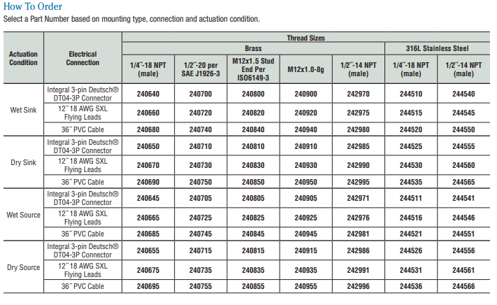 Confira a linha completa e seus Part Numbers dos Sensores de Nível Gems CAP-300: